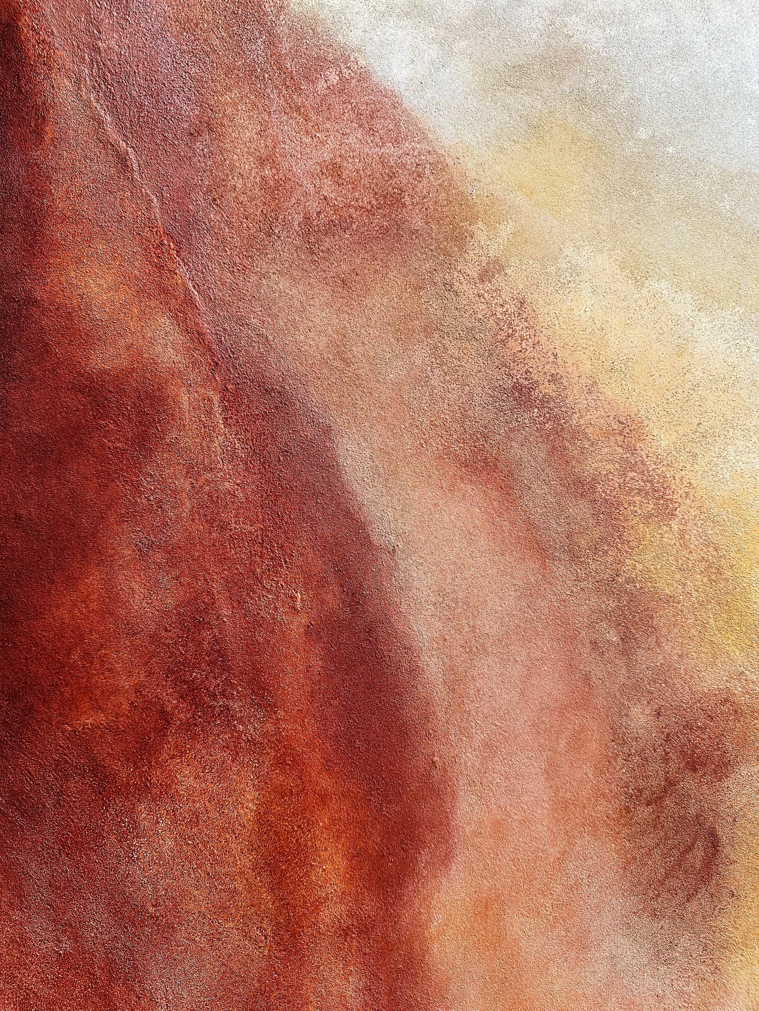 Natural pigments and elements are offered by the landscapes I move through, each bringing its own presence and character. The finished work carries traces of that connection — layered, grounded, and deeply felt.